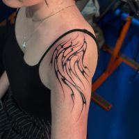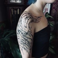 La gran mayoría han sido trabajos a freehand, entre ellos, hemos dado por finalizada una manga abstracta completa, la cual ha significado mucho para su dueña, ya que arrastraba tattoos antiguos con los que no se sentía nada cómoda. El trabajo añadido cover fue un proceso delicado, pero los fluidos nos han permitido integrarlos perfectamente.